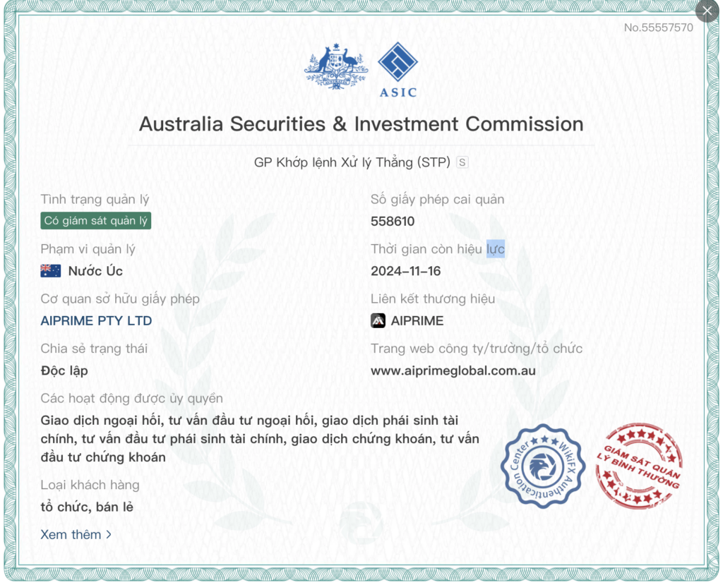 Trong số các sàn đang hoạt động tại thị trường Việt Nam, AIPRIME Global được vận hành bởi AIPRIME PTY LTD có trụ sở tại Úc với giấy phép ASIC. Sàn này cung cấp đầu tư vàng online qua CFD cùng nhiều tài sản khác như ngoại hối, dầu thô và chỉ số quốc tế. Theo dữ liệu từ World Gold Council, khối lượng giao dịch vàng qua các kênh đầu tư vàng online đã vượt qua vàng vật chất lần đầu tiên vào năm 2024, phản ánh xu hướng dịch chuyển mạnh mẽ sang hình thức giao dịch số.