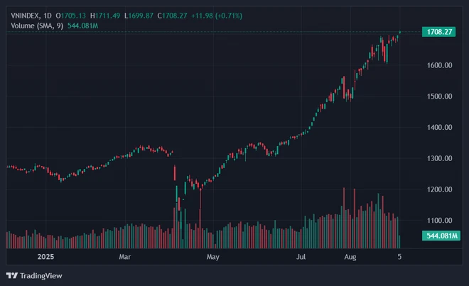 Bức tranh tài chính nước nhà đang trải qua những ngày tháng thăng hoa rực rỡ nhất trong lịch sử giao dịch. Việc chỉ số VN-Index 1.700 điểm đang trở thành chủ đề nóng bỏng được bàn tán sôi nổi trên mọi diễn đàn đầu tư. Cột mốc điểm số này mang một ý nghĩa tâm lý vô cùng lớn lao đối với hàng triệu nhà đầu tư trên khắp cả nước. Sự hưng phấn tột độ đang lan tỏa khắp các sàn giao dịch đi kèm với những dòng tiền khổng lồ liên tục được bơm vào hệ thống.